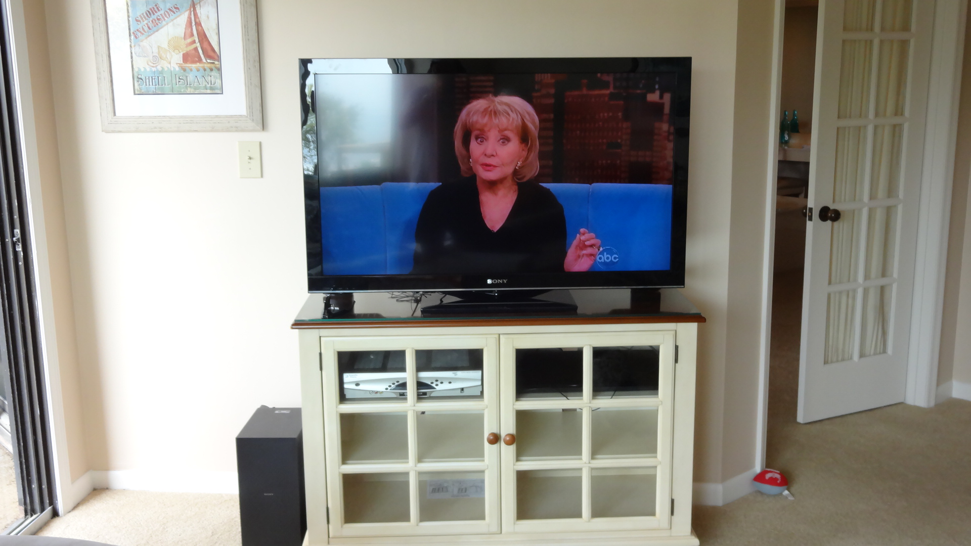 32" Sony Tv + DVD BlueRay player which connects to Netflix (your account) |